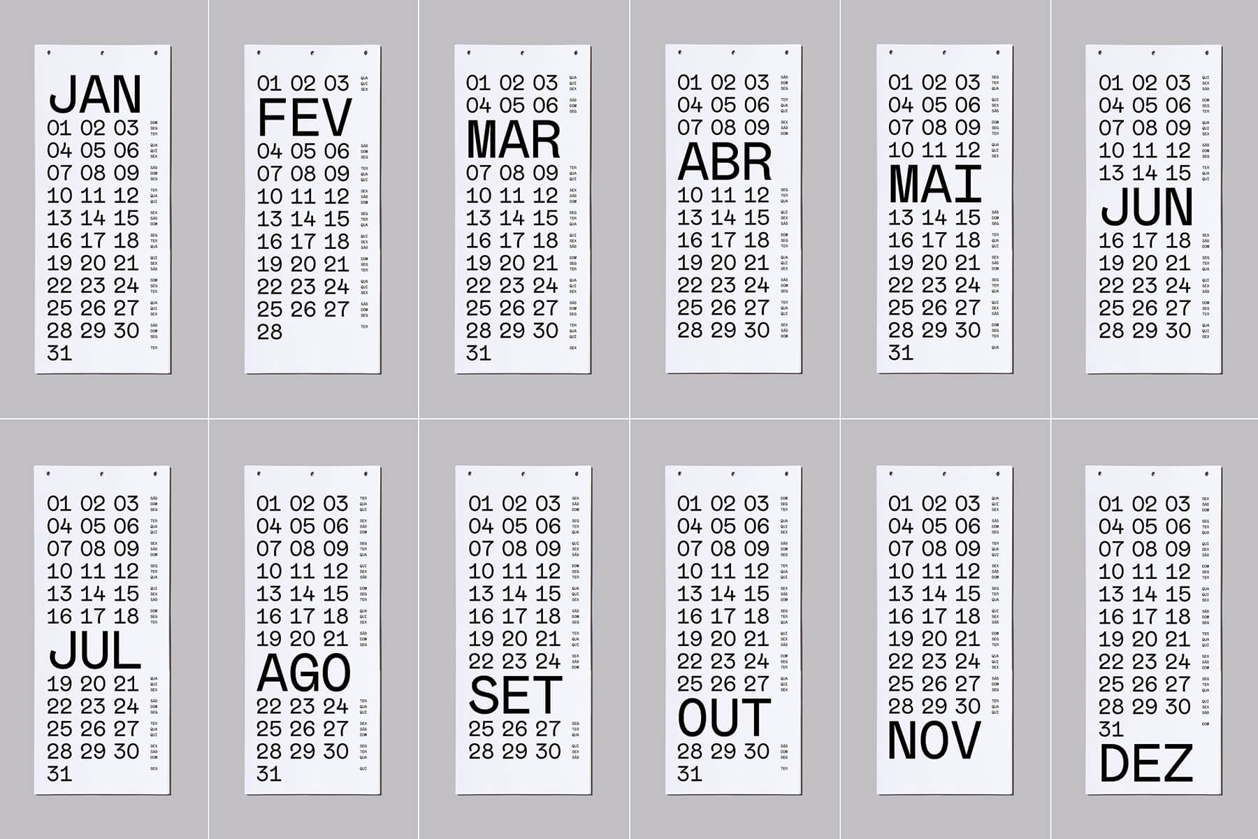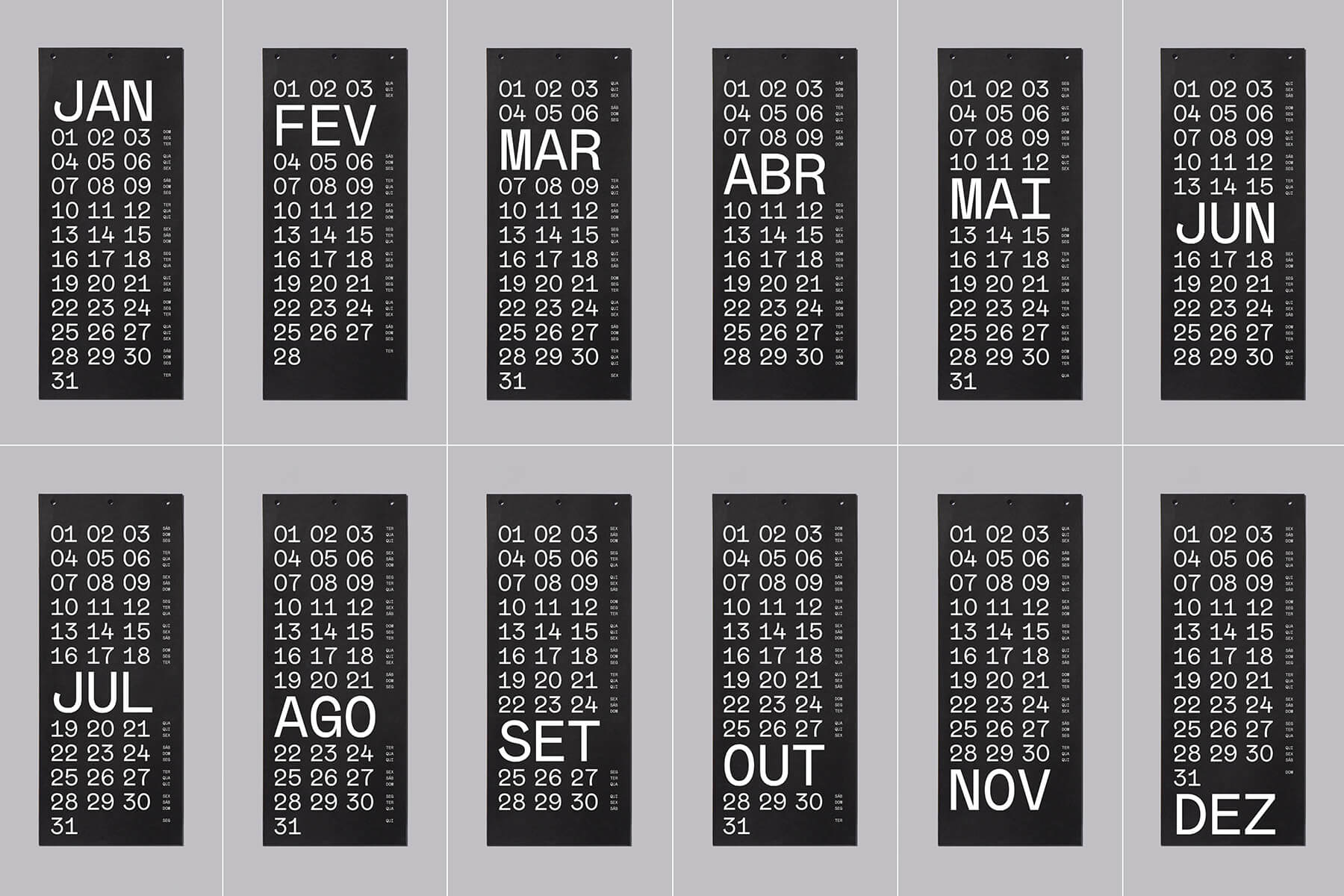 Os calendários são disponibilizados no idioma Português.